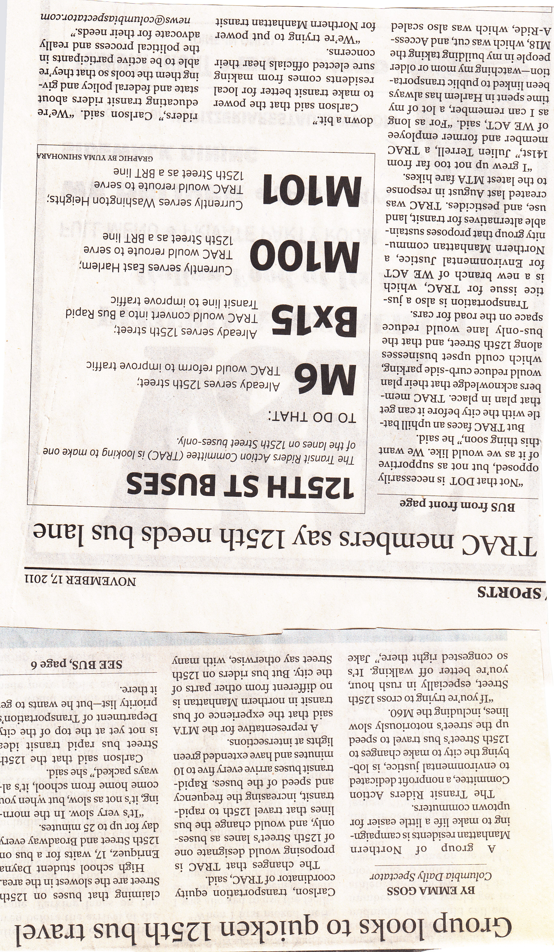 Columbia University Daily Spectator Groups Look to Quicken 125th Bus Travel (November 17, 2011)